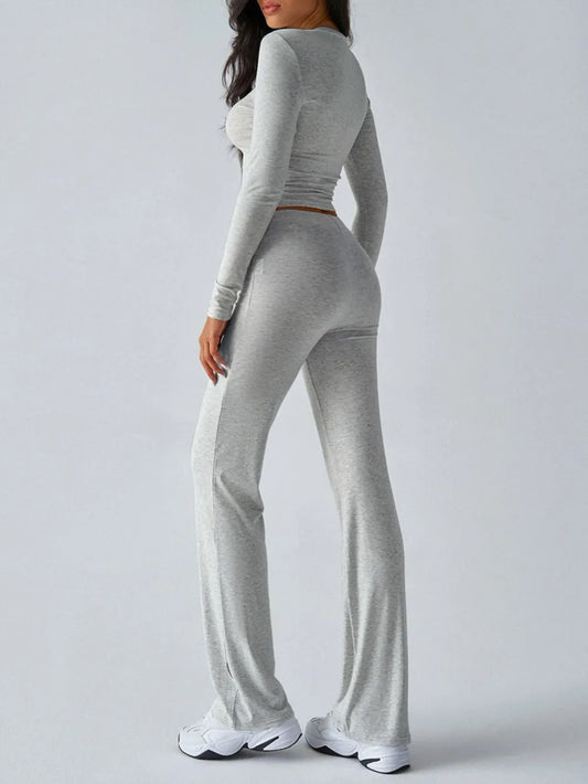 Devine Crisscross Round Neck Long Sleeve Top and Pants Set