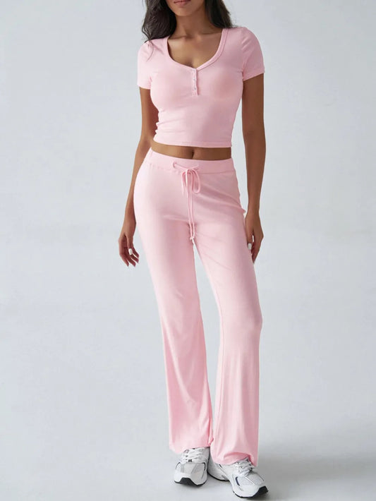 Devine Ribbed Round Neck Dropped Shoulder Top and Shorts Set