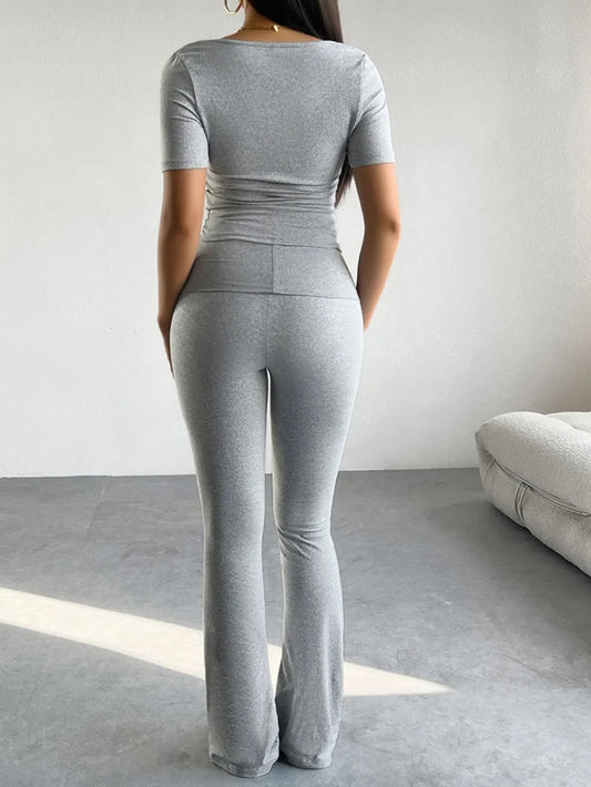 Devine Scoop Neck Long Sleeve Top and Shorts Set